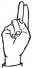 На ћирилици написано ЕМИЛИЈА ЈОВАНЧЕВИЋ састоји се из 17 слова [?]. Исписано ћириличном једноручном азбуком за глувонеме: